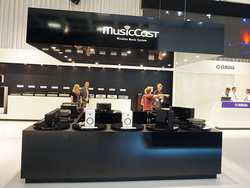 今回のヤマハブースでは、「MusicCast」と名付けたマルチルーム再生機能を大々的にアピール。スマートフォンのアプリを使って簡単にマルチルームでのワイヤレス音楽再生が行える同機能に対応した製品群を前面に押し出す展示を行っている。以下に紹介する日本未導入モデル群も、基本的にすべてがMusicCast対応製品だ。