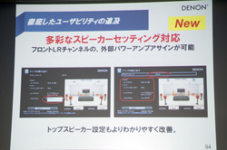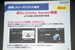 先行して登場したAVR-X2200W/X1200W(関連ニュース)と同様に、イネーブルドスピーカー使用時の設定も強化。イネーブルドスピーカーから天井までの高さを入力することで、スピーカーから試聴ポイントまでの距離を計算。反射を含めたディレイタイムをより正確に実現することが可能となった。天井までの距離は0.9m〜3.3mの間で設定できる。