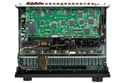 パワーアンプ初段の差動増幅段には、AVR-X7200Wと同様に特性のそろった2つのトランジスタを備えたデュアル・トランジスタを採用。D/Aコンバーターのポストフィルターには高品質なシリコンウェファーによって音質対策が為されたオペアンプが採用されている。