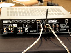 本体にWi-Fiを内蔵しており、IEEE802.11b/g/n規格に準拠。ネットワークモジュールもヤマハが開発したオリジナルを装備している。ネットワーク音楽再生機能は、ハイレゾ再生機能が強化されており、新たにDSD 5.6MHzに対応しており、PCM音源はAIFF(192kHz/24bitまで)も再生可能。そのほか、192kHz/24bitまでのWAV/FLAC、96kHz/24bitまでのALAC再生も行える。USB経由での音楽再生も行える。