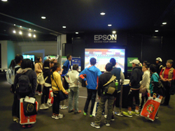 「大画面ゲーム体験コーナー」では、Xbox Oneを使用して、スポーツアクションゲーム「Kinectスポーツライバルズ」をスクリーンに投写する。こちらでもプロジェクターはEH-TW5350を使用。