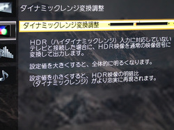 また、使用するテレビの輝度表示性能にあわせて、出力ダイナミックレンジを手動で調整できる「ダイナミックレンジ変換調整」メニューも備えており、-6〜+6の範囲で調整できるようにしている。
