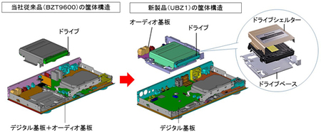 内部は、アナログオーディオ/デジタル/BDドライブの各ブロックを鋼板で分離して独立化した3ブロック独立構造で、これにより各ブロック間の電気的・磁気的干渉を抑えられるように配慮した。