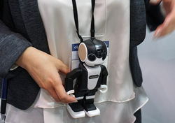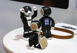 ロボット型のスマートフォンRoBoHoN(ロボホン)も多数展示されている。