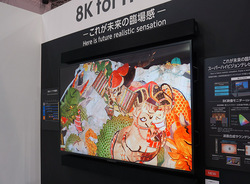 アスペクト比16:9、画素数7,680×4,320、表示フレーム周波数最大120Hz、BT.2020色域、量子化ビット数最大12ビットなど、8K/SHV規格に準拠したディスプレイ。高額製品だけになかなかその映像を見られる機会は少ない。今回の展示は貴重な機会となりそうだ。