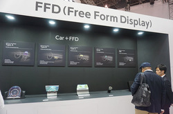 今回は平面ディスプレイだけではなく、曲面ディスプレイでかつ自由な形状にした製品群も展示していた。