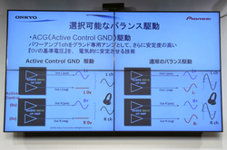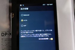 パイオニアDAPとの最も大きな違いは、「DP-X1」は2.5mm 4極端子を備え、バランス接続に対応していることだ。さらに2.5mm 4極端子からの出力は「バランス接続モード」と、片側のアンプをGND制御のためだけに使うことで安定したGND確保が可能な「ACG(アクティブコントロールGND)モード」を選ぶことができる。