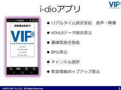 対応端末として、i-dioのほか、地上デジタルテレビ、FMラジオにも対応した3波対応のAndroid SIMフリースマートフォン「i-dio Phone」(コヴィア製)が年内に登場する予定。