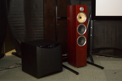 オンキヨーはデモンストレーションの中でドルビーアトモスの構築方法を紹介。より手軽に導入できる方法として同社のイネーブルドスピーカー「D-309H」を用いたアトモス再生のデモも行った。