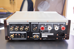 Marantzブランドからは、USB-DAC/ヘッドホンアンプ「HD-DAC1」(関連ニュース)と同様のデザインを採用したプリメインアンプを参考出展した。価格や発売日はもちろん、型番を含めた詳細情報は現時点で明かされていないが、HD-DAC1と同様にUSB-DACやシングルエンド出力のヘッドホンアンプを備え、さらにはスピーカーを駆動するプリメインアンプを内蔵していることは、その外観から判別できる。ヘッドホン祭の会場では、実際にヘッドホンと組み合わせての再生デモも実施されていた。