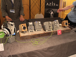 AZISドからは、ネットワークプレーヤー「muSa」、「S2」シリーズのハイブリッドアンプとスピーカー、ヘッドホンアンプコンバーター「Sele」を組み合わせたシステムによって、スピーカーとヘッドホンを切り替えながらの試聴を展開している。