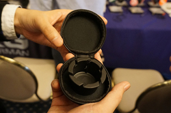 なかでも目を引いたのは、11月に発売予定だというイヤホンケース。見た目はY50のハウジングと同じデザイン。フタの部分はY50のハウジングと同じくアルミを使っているとのこと。カラーバリエーションも、Y50と同じ色にホワイトが加わった5色のラインナップだ。内部はケーブルを巻いて収納できる機構になっている。