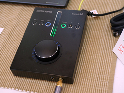 ローランドは、前回の「春のヘッドフォン祭」に引き続き、小型USB-DAC/ヘッドホンアンプ「Mobile UA」と、独自DSPエンジンを搭載したUSBオーディオインターフェース「Super UA」を展示。「Mobile UA」が最新ファームウェアによってバランス駆動に対応したことなどを紹介していた。