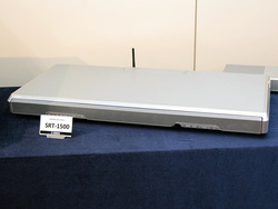 SRT-1500は、2.8cmコーン型フルレンジを8基備えるアレイスピーカー部、10cmコーン型ユニットを4基搭載するウーファー部、8.5cmコーン型ユニットを2基備えるサブウーファー部を搭載するサウンドボード。本機も5.1ch“リアルサラウンド”の創出に対応する。本体サイズは780W×77H×370Dmm。