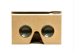 スマホ向けのビューワー(Google Cardboard)は、右目用・左目用のレンズを通してスマートフォンのVR動画を見るというもの。販売もされているが、スペックが公開されているので自分で作ることもできる。