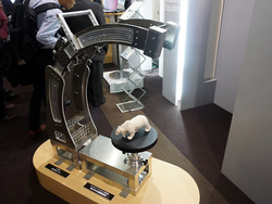 また、“光線空間を再現する立体映像テクノロジー”という「ライトフィールドイメージング」も展示。これは、ニコンとのコラボレーションで開発したカメラを使って撮影した立体コンテンツをメガネなしで見られる裸眼3Dのデモで、手元のタブレットで自由に対象物の角度を変えることも可能。美術品の展示や、医療用での活用などを提案している。