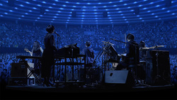 上映コンテンツとして、上記のようにサカナクション「Aoi −碧−」のミュージッククリップを特別制作。実際に体験してみると、高精細な8Kでの3D映像は目の前に現れるメンバーが本当にリアルに感じられ、実際のライブなどでも使用されるレーザー光線も用いた演出も相まって、かなりの没入感・臨場感を得られた。この感想は記者以外の来場者も同様だったようで、「これは凄いね、来て良かった」といった会話をしている人も見られた。