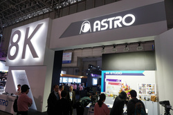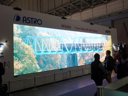ブースの外観から大きく8Kをアピールするアストロデザインは、55インチの8K液晶モニター「DM-3814」やカメラ「AH-4801-B」など様々な8K対応製品を展示。PFUブースと結んで8K映像の伝送デモなども行っていた。
