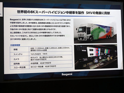 池上通信機は55型の8Kモニターを参考出展しているほか、8K・22.2chの番組制作ができる中継車を納車したことも紹介。そのほか、キヤノンが8K対応レンズ「7×19.7N KASD」を参考出展していたりなど、各社が8Kソリューション提案を行っていた。