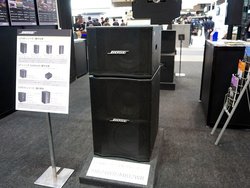 BOSEでは、映画館やホール、スポーツ施設向けのスピーカー製品群を展示。国内の様々な施設に導入実績があることをパネル展示でアピールするなどしている。