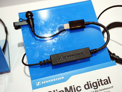 ゼンハイザーは、コンデンサーマイクロフォンやガンマイク、ヘッドセットなどの各モデルを展示。iPhoneに直接録音できるようLightning端子を採用したピン型マイク「ClipMic digital」なども展示している。