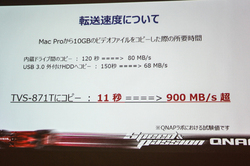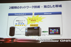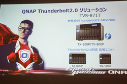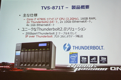 そこでQNAPが着目したのがThunderbolt。これまでThunderbolt対応ストレージは、すべてブロックベースのDAS(直接接続型ストレージ)だったが、QNAPでは世界初のThunderbolt 2.0対応NAS「TVS-871T」を開発。非常に高速なデータ伝送を可能にした。