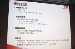 昨年1月からは見逃し視聴サービスを開始し、視聴数は1年10ヶ月で約5倍に伸びた。宮本氏も「見逃し視聴に対するニーズの高さを感じる」とコメントする。また、アプリの強化によりスマホ/タブレットからの視聴も大きく伸びており、アプリのダウンロード数も昨年から約2倍に伸びたという。