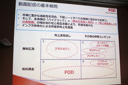 フジテレビは、「FOD(旧:フジテレビオンデマンド)」にて地上波無料見逃し配信サービス「プラスセブン」や、配信過去作品等の都度課金販売、オリジナル4Kコンテンツ/ライブ/コミック等の配信を実施している。「TVOD/SVOD/見逃し配信サービス」を、「無料/有料」の価格体系と組み合わせて、ワンプラットフォームで有機的に展開していく戦略だ。2005年のスタート以来会員数は80万人にまで増え、月間アクティブユーザー数は200万人。しかも「既に黒字化している」と力強くアピールする。