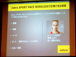 なお、ジャイロやGPSなどの各種センサーが本機に内蔵されているわけではなく、アクティビティのトラッキングはスマホアプリ側の機能を利用。本機はアプリの機能を利用するための鍵のような役割を担う形だ。また、同アプリはJabraの従来からのスポーツ向けモデルにも対応。そのほか、「endomondo」「RunKeeper」「STRAVA」などサードパーティの汎用トレーニングアプリにも本機は対応している。