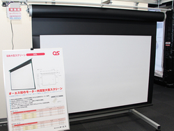 また、オーエス初のモーター内蔵スクリーンも展示。220インチ以上のサイズから対応する大型の巻き取り式スクリーンで、巻き取りローラー内にモーターを組み込んでいる。モーターには上限リミット機能を搭載。なお、今回設置されていたのは80インチのカットサンプルだった。
