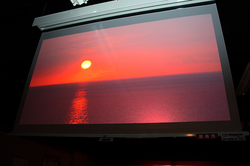 さらに、会場内には国内未発表の新モデルも展示されていた。実機写真はNGとのことだったので本記事には掲載できないが、色再現性をより高めたというフルHD機で、実際に投写デモも行われていた。仕様や価格も現時点では公表できないとのことなので、詳細については正式発表を待ちたい。