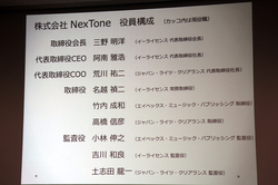 新会社「NexTone」は、「Next Tone=次世代の音」、「Next one=次世代の牽引者」などを意味する造語。経営理念として「権利者から選ばれ、利用者から支持される著作権管理事業者となる」を掲げる。阿南氏は「『管理人』『番人』ではなく、権利者と利用者両方のメリットを尊重し、新時代の要請にも柔軟に対応することで、楽曲利用の活性化を目指す」と説明した。