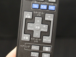 なお本機は2.1chシステムだが、AQUOSとのファミリンク接続により、AQUOS本体のスピーカーをセンタースピーカーとして利用した3.1chサラウンドシステムとして使える機能も備えている。5.1ch音声収録のBDソフトなど、サラウンド音声を収録した映像データを再生するときに有効となる機能で、付属リモコンの「AQUOS 3.1ch」ボタンを押すだけで、2.1chと3.1chを切り替えることができる。3.1ch音声時には、付属リモコンを使えば、AQUOS本体から出力されるセンターチャンネルの音量のみを単独で調節することも可能。