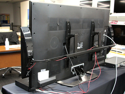 従来のサウンドバーなどでは、狭額縁テレビと組み合わせると画面を遮ってしまうといったことや、テレビ台に設置スペースが確保しづらいといった問題があった。HT-SP100は、その問題を解決するため、テレビ画面の両サイドに“あらかじめくっついてるかのように”設置することで、省スペース性を高めていることが特徴となる。製品には取付アングルが付属し、40型〜70型サイズのAQUOSに取付けることができる。