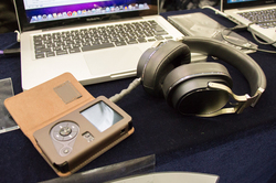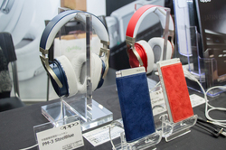 OPPO Digital Japanは、ポータブル型の平面磁界駆動型ヘッドホン「PM-3」とポータブルヘッドホンアンプ「HA-2」のカラーバリエーションを今回も出展(HA-2のカラバリは参考出展)。そのほか平面磁界駆動型ヘッドホンの旗艦モデル「PM-1」やヘッドホンアンプ「HA-1」を軸としたデモを行っていた。