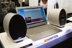 クリプトンはUSB入力を搭載したハイレゾ対応アクティブスピーカーのトップエンドモデル「KS-7HQM」と、同シリーズのミドルレンジモデル「KS-3HQM」を出展。両モデルによるハイレゾ再生のデモを実施した。