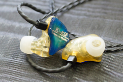 くみたてLabの「KL-REF」はダイナミック型ドライバー×2、BAドライバー×3のハイブリッド構成を採用したカスタムIEM。2基のダイナミック型ドライバーを収めるために、専用設計して3Dプリンターで出力したハウジングを採用している。排圧機構の設置により振動板と鼓膜を保護する機構を搭載した点や、低域の量感を調節できるボリュームオプションを用意した点も特徴だ。