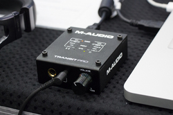 本ブースに先行出展されていたのは、M-AUDIOブランドのコンパクトなUSB-DAC/ヘッドホンアンプ「TRANSIT PRO」だ。本機は5.6MHz DSDや384kHz/32bit PCMに対応。ステレオ標準/ミニのヘッドホン出力に加えて、ライン出力、光デジタル出力を搭載する。
