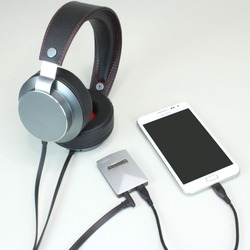 最大96kHz/24bitまでのPCM入力に対応したDACを内蔵するヘッドホンアンプ。音声入力端子にmicroUSBと3.5mmステレオミニを備え、ヘッドセットとの接続も可能となっている。出力端子には3.5mmステレオミニを装備する。