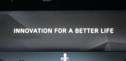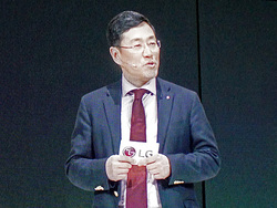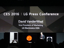 プレスカンファレンスの冒頭では、LG電子アメリカのCEO ウィリアム・チョウ氏が登場。プレゼンテーション画面には、テレビ・洗濯機などの同社を代表する製品と共に、「よりよい生活のための革新」という文字が表示された。これが2016のCESにおけるLG電子のメッセージであるようだ。