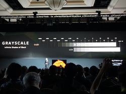 続いては、有機EL技術による「黒」の表現力の高さが、液晶と比較する形で紹介された。同じ黒でも、有機ELの方が液晶と比較してより多くの階調で表現でき、コントラストも高いことが訴求された。