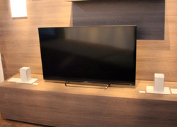 しかも両機は、2台を使ってSongPalで設定することで、ステレオ再生することも可能。どちらかがホストになり、L/R間はWi-Fiで接続するため、遅延も少ない。ブースでは2台のSRS-X55をテレビの両脇に置き、ステレオ再生デモを行っていた。