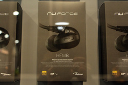 nuforceのイヤホンでは、Bluetoothイヤホン「BE6」や、リファレンスクラスのBAイヤホン「HEM8」「HEM4」「HEM2」が、パッケージのみではあるが、ブースを囲む壁の外側に展示されていた。いずれも日本未導入のモデル。HEM8は4基、HEM4は3基、HEM2は1基のBAドライバーを搭載している。
