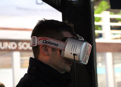 来場者が実際にゴーグルを被ってゲームを行っていた。ゲームのプレーヤーが見ている映像は、プロジェクター「GT1080」を2台使い、映像をブレンドして表示していた。