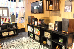 KLIPSCH(クリプシュ)は、今年で会社創立70周年を迎えた。ブース内のあちこちに「70 YEAR ANNIVERSARY」の文字が並んでいるほか、ブース全体もアメリカの古き良き時代を思い起こさせるような、伝統的なインテリアで統一されている。