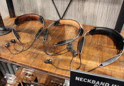 ネックバンド式のBluetoothイヤホンでは、ソニーもh.ear in Wirelessを今回のCESで発表した。だが、h.ear inがポップな色調とミニマルなデザインを採用しているのに対して、クリプシュが展示した製品は、皮製のバンドが粗めのステッチで縫われているなど、伝統的なデザインを採用している。同じ機能を同じデザインで実現しながら、デザインの方向性は対極にあるのが興味深い。