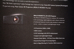 4Kプロジェクターも紹介。ブースには置かれていなかったが、昨年末に欧州や北米で発表したモデルで、北米でのモデル名は“REALiS”「4K500ST」。キヤノンとして初の4Kプロジェクターで、AISYSで補強したLCOS技術を採用している。解像度は4,096×2,400、輝度は5,000ルーメン。価格は55,000ドル。