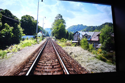 視聴ルームを取り囲む壁には「8K RIDE EXPERIENCE」と書かれている。同社の8K対応カメラで撮った映像を、3面のスクリーンに投写。画面は前方から後方に流れていき、文字通り8K映像で描かれた世界を実際に「ライド」しているような感覚が味わえる。