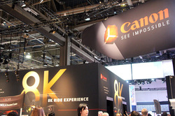 キヤノンは、デジカメやビデオカメラ中心の展示ながら、ブースの一角に「8K」と大書された特別視聴ルームを設け、賑わいを見せていた。