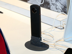 フォロワーが次々に登場している全天球カメラの先駆け的な存在であるTHETA。発売からしばらく時間が経っているが、まだまだその機能や魅力をしらない来場者は多い様子。